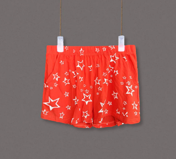 The shorts feature a star print. An ideal choice for the beach or summer walks.