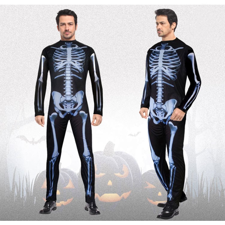 Men's skeleton costume suitable for Halloween.