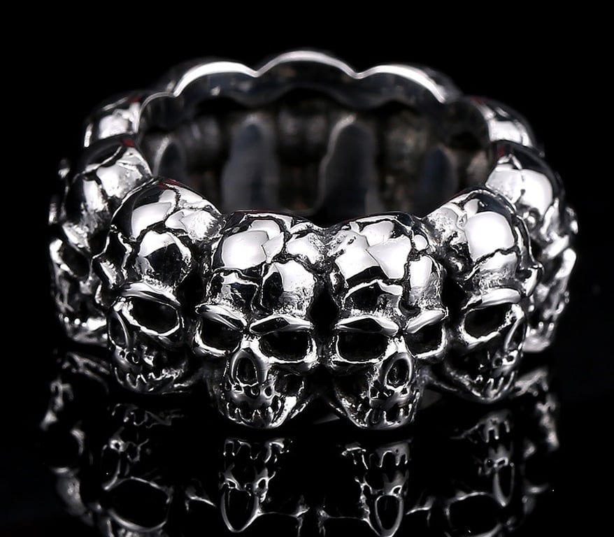 We have a stylish ring for you or your loved ones, adorned with skulls side by side.