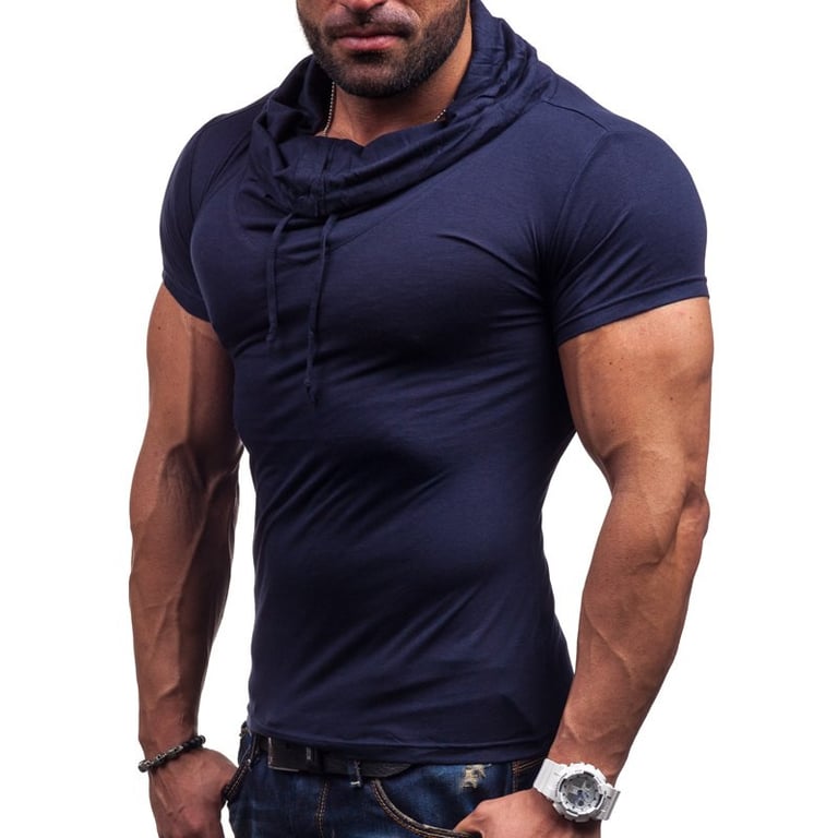 Men's short-sleeve t-shirt with a hood and drawstrings. Fitted cut.