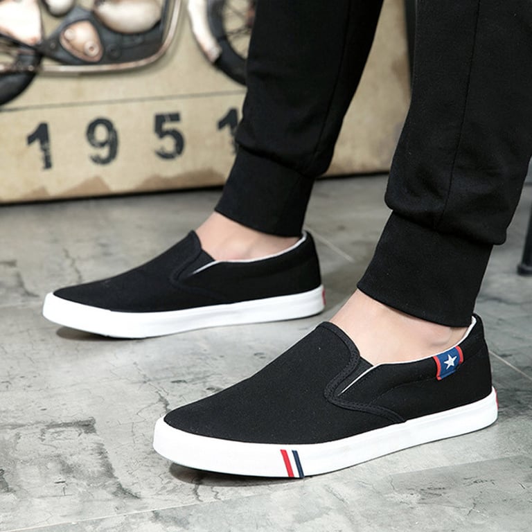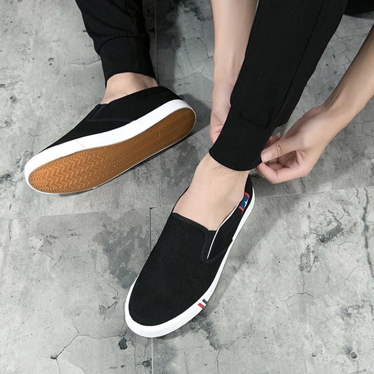 Men's slip-on trainers with a round toe and a sturdy heel. Flat rubber sole. Available in multiple colour options.