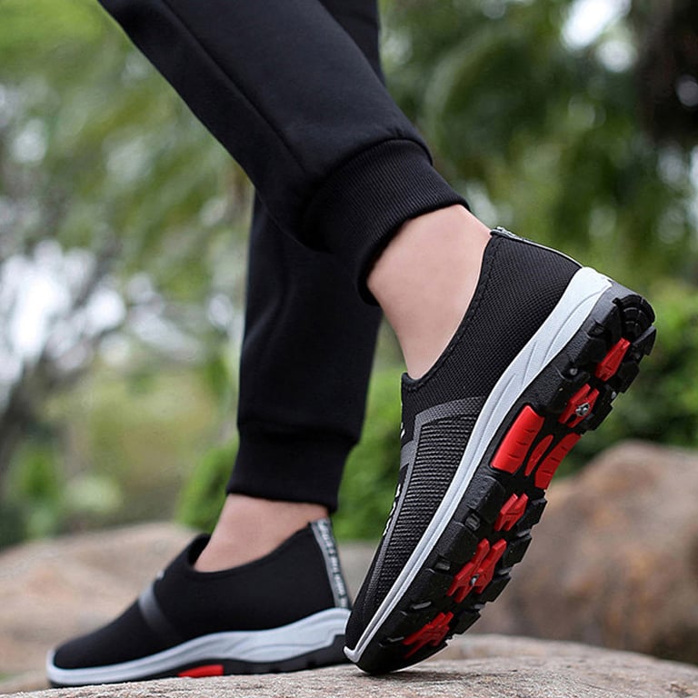 Men's sports trainers with a sturdy heel. Flexible rubber sole with treads. Slip-on. Available in multiple colour options.