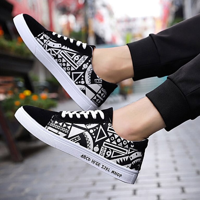 Men's lace-up trainers. Round toe. Colourful print on the sides. Flat rubber sole. Available in multiple variants.