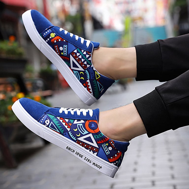 Men's lace-up trainers. Round toe. Colourful print on the sides. Flat rubber sole. Available in multiple variants.