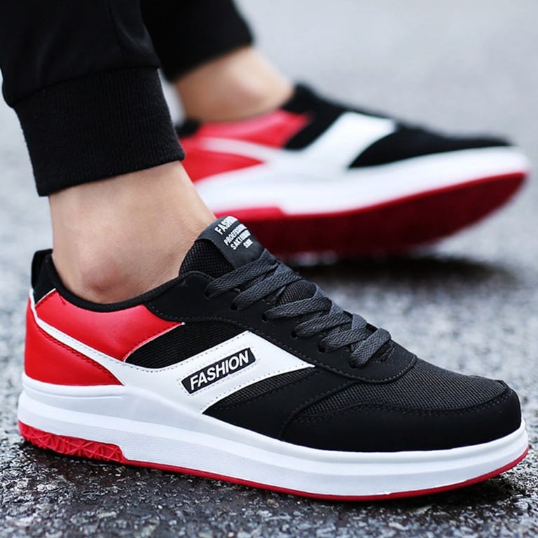 Men's sports trainers with a rubber sole featuring a textured design and on a platform. Lace-up. Available in multiple colour options.