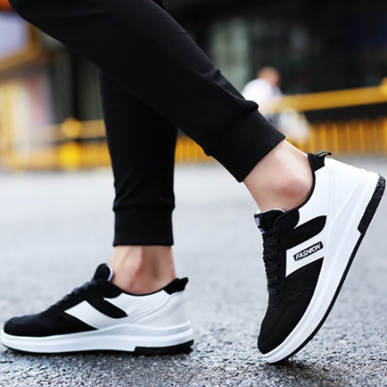 Men's sports trainers with a rubber sole featuring grooves and on a platform. Lace-up. Available in multiple colour options.