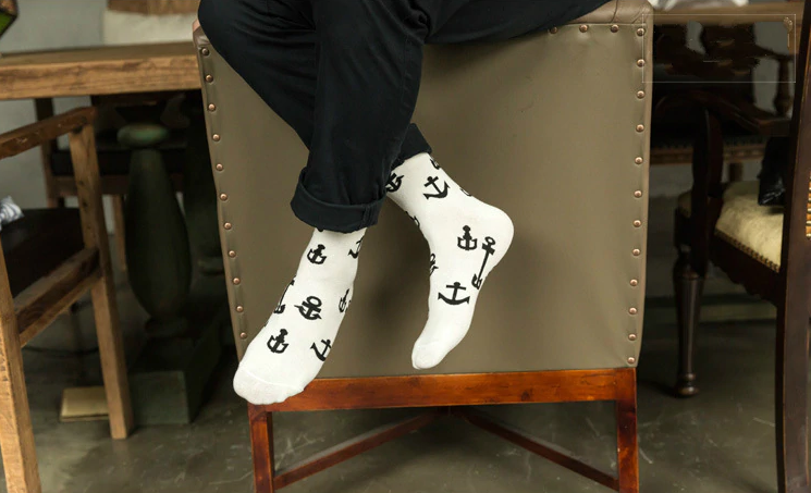 Men's socks with anchor prints are for all sea lovers and sailors.