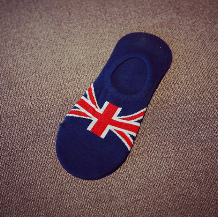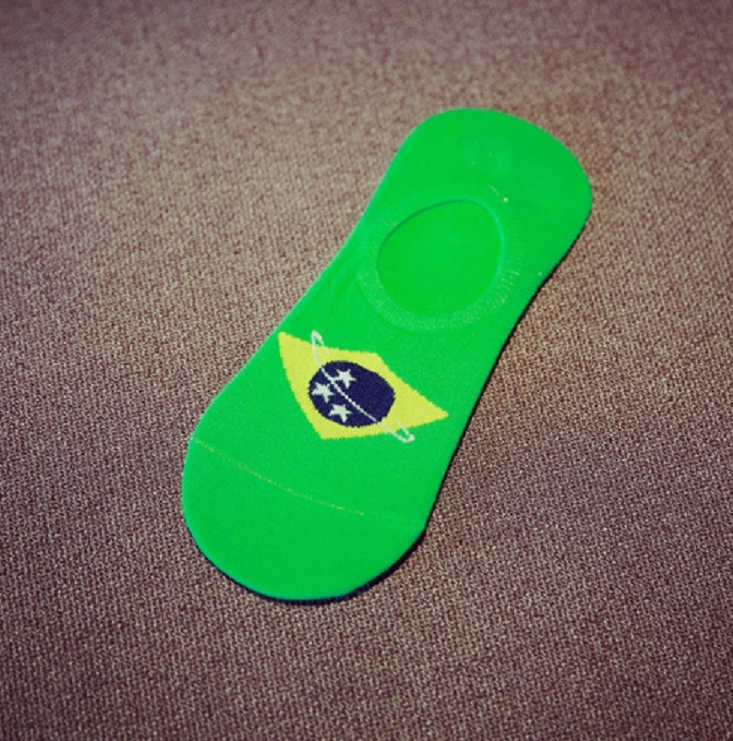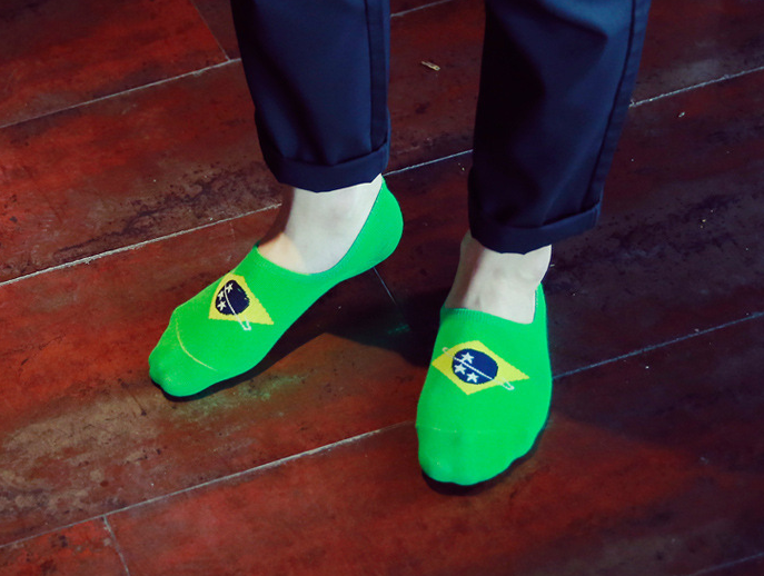 The socks feature patterns of various flags from around the world.