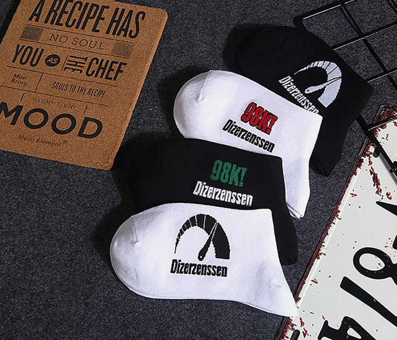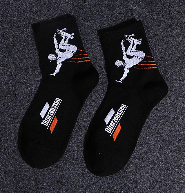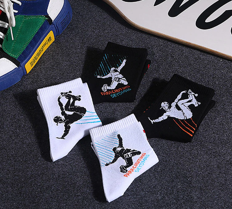The socks feature prints of various adrenaline sports.
