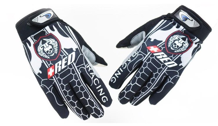These gloves with a skull print and the Racing inscription are suitable for sports.