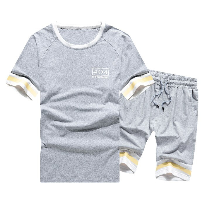 Men's sports set. Short-sleeved t-shirt and shorts with an elastic waistband and drawstrings. Available in multiple colour options.