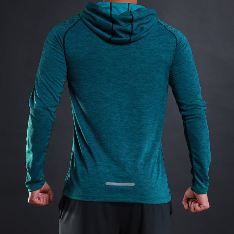 Men's sports hoodie. Fitted cut with long sleeves. Stretchy. Reflective elements. Available in multiple colour options.