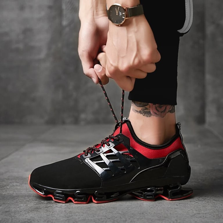 Men's sports trainers with laces. Slip-on. Flexible rubber sole with ribbing. Available in multiple colour options.