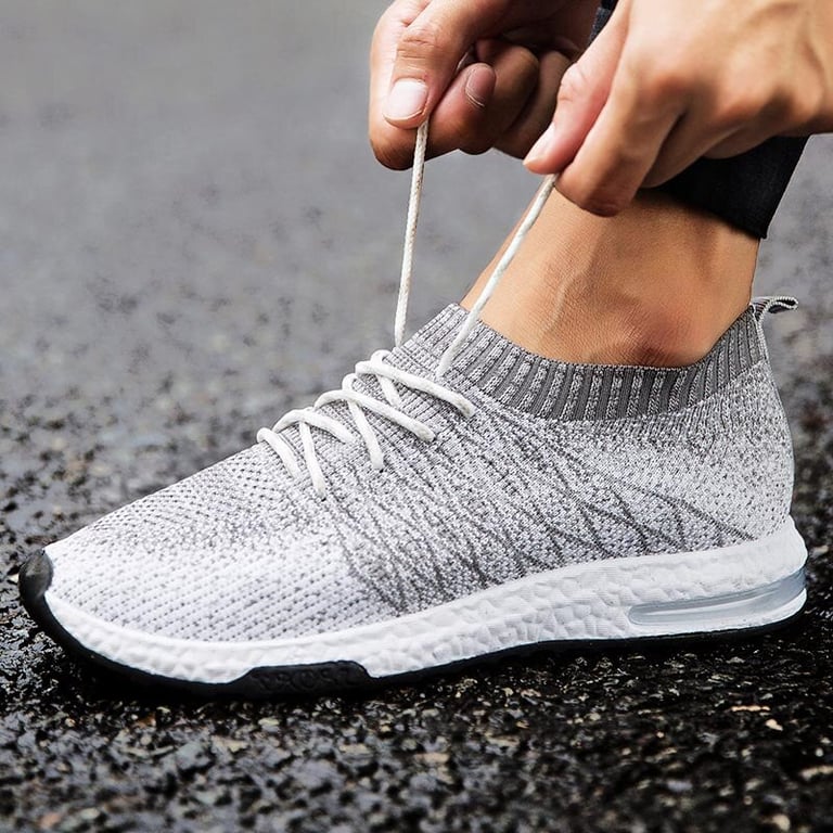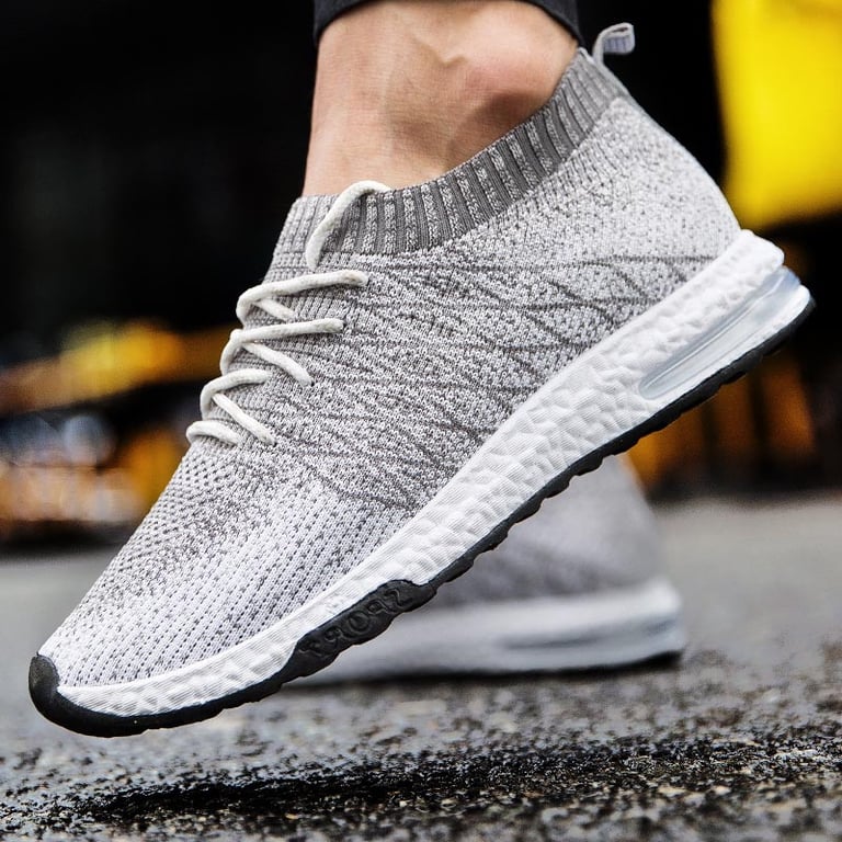 Men's sports trainers with an elastic sock and lacing. Flexible rubber sole with a tread pattern. Available in multiple colour options.