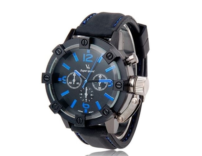 Men's sports watch – blue and red colour scheme
