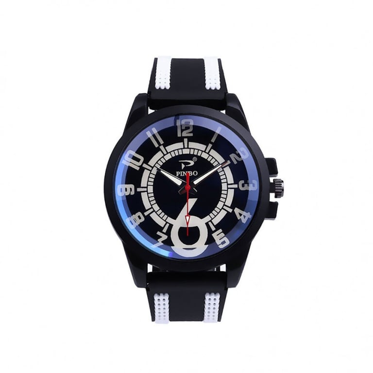 Elegant men's watch with an adjustable silicone strap. Dial in a metal frame. With numbering.