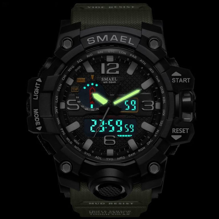 Men's army sports watch. LED backlight display, waterproof up to 30 m. The strap size is adjustable from 14 to 22 cm.
