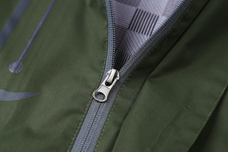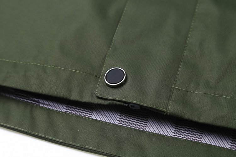 The jacket features two front pockets and one chest pocket. It is lightweight, trendy, and 100% breathable.