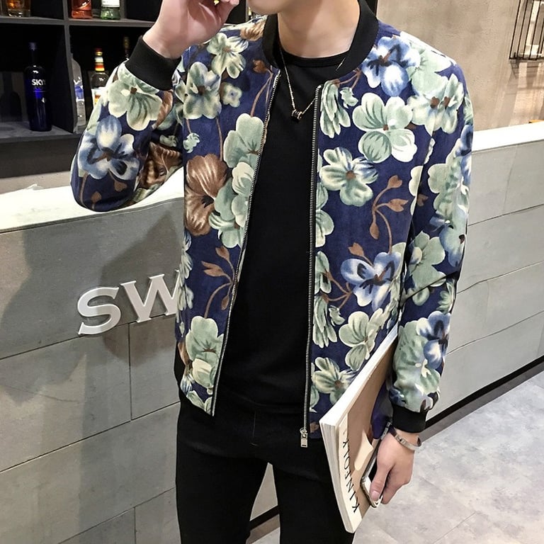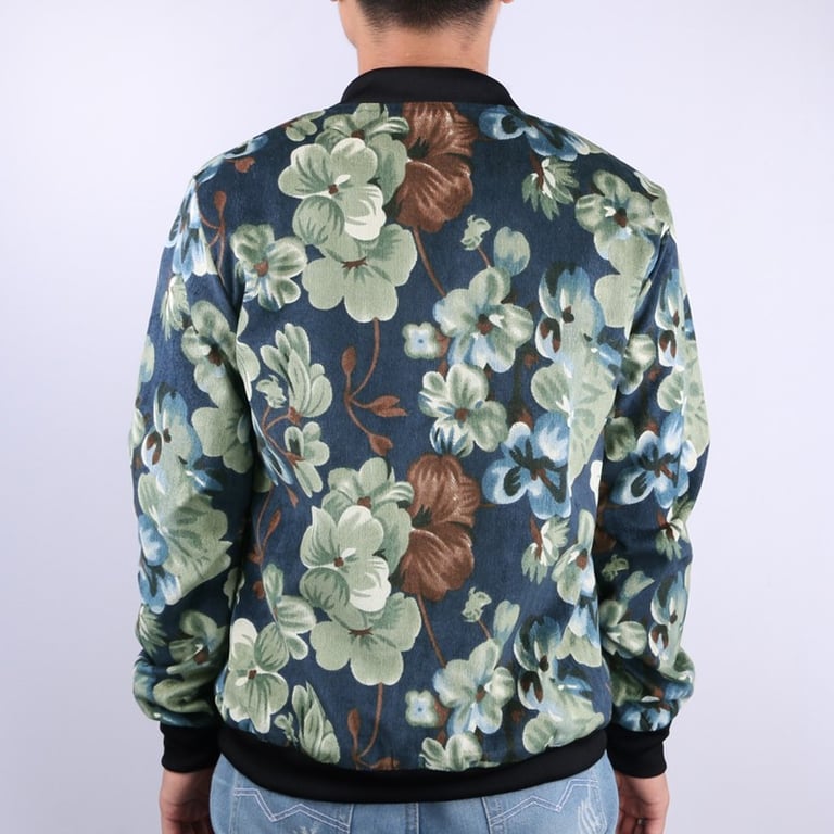 Enjoy the spring days with this lightweight men's jacket featuring flowers that will brighten up your spring days.