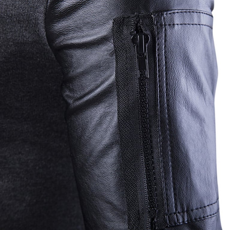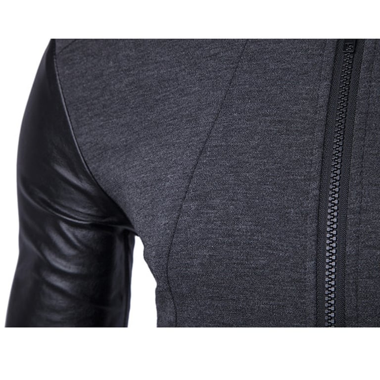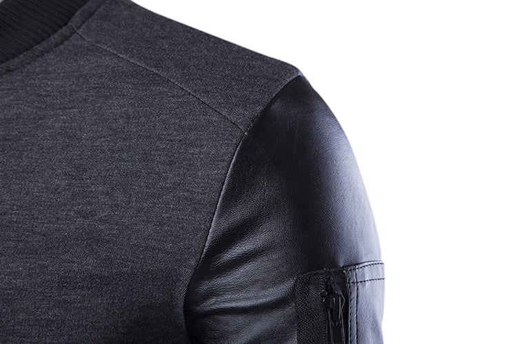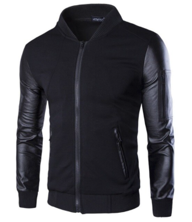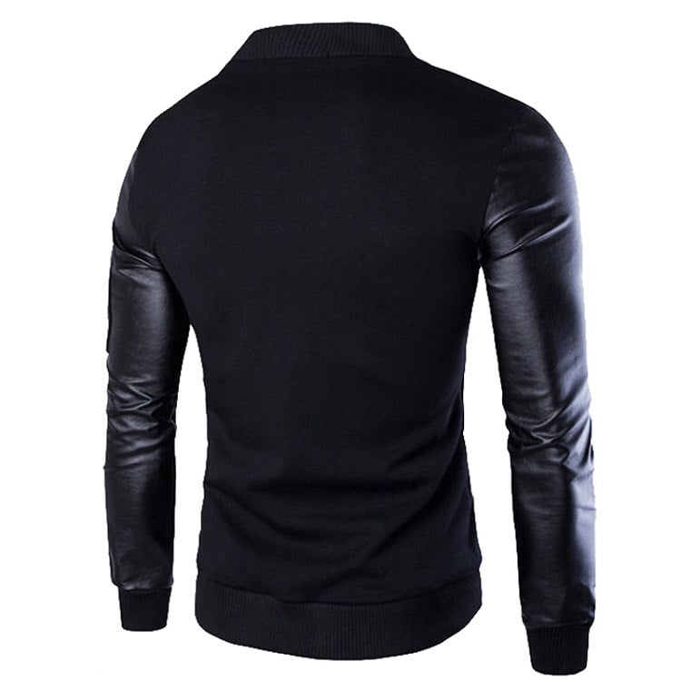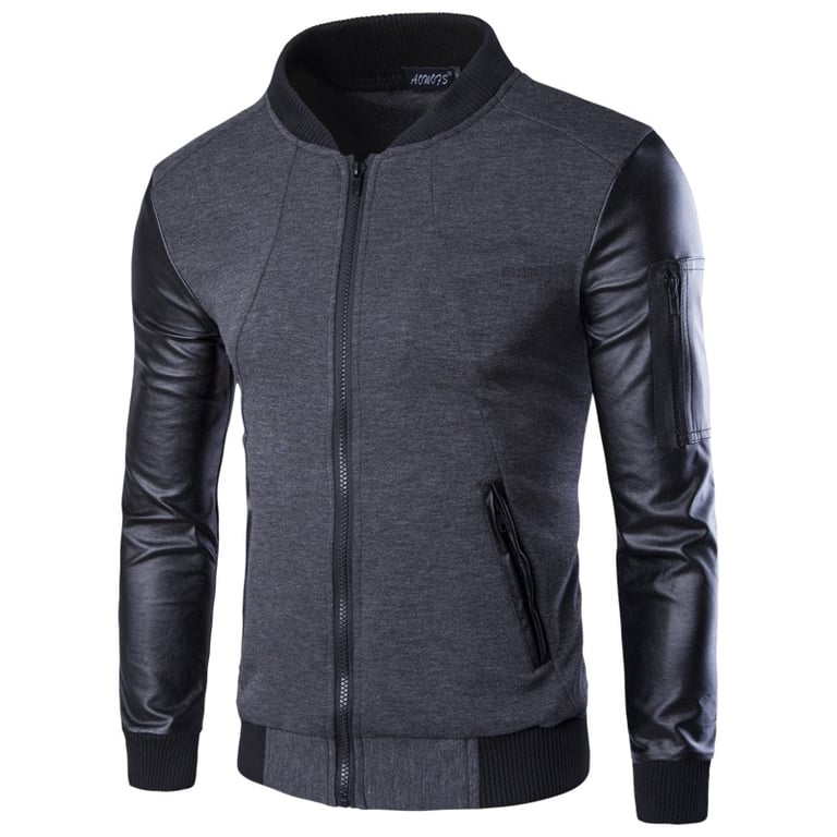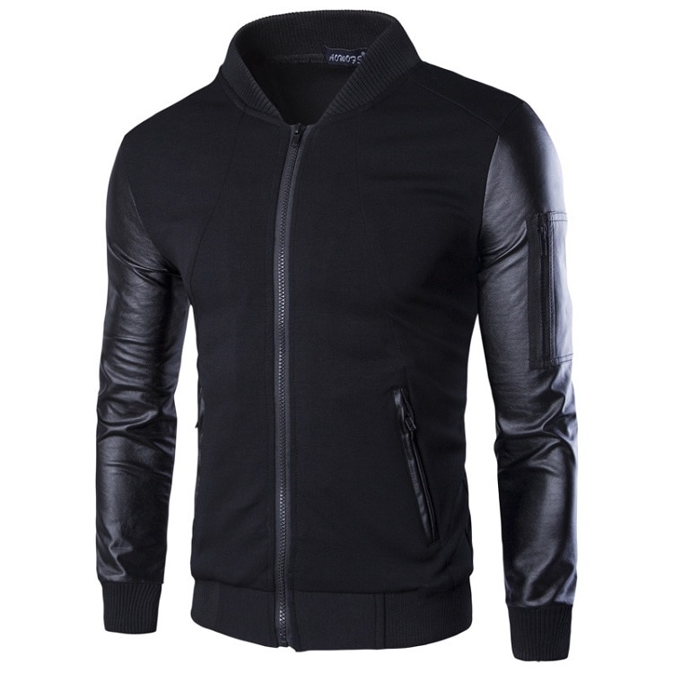 • Tags: Men's spring jacket, zip-up jacket, jacket with leather sleeves, faux leather, hoodless jacket