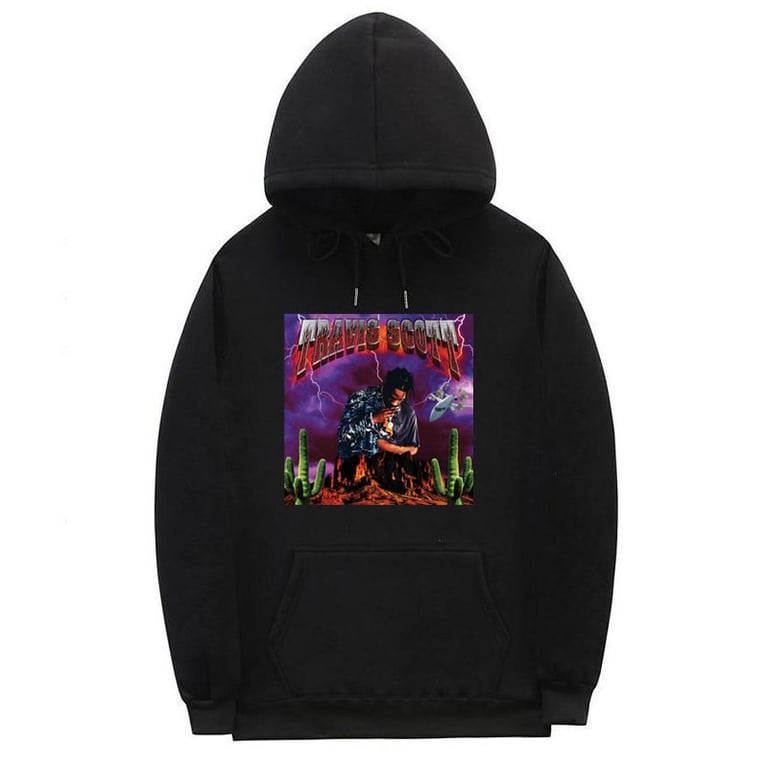 Stylish hoodie featuring the motif of the famous American rapper Travis Scott. If you are a fan, this hoodie should not be missing from your wardrobe.
