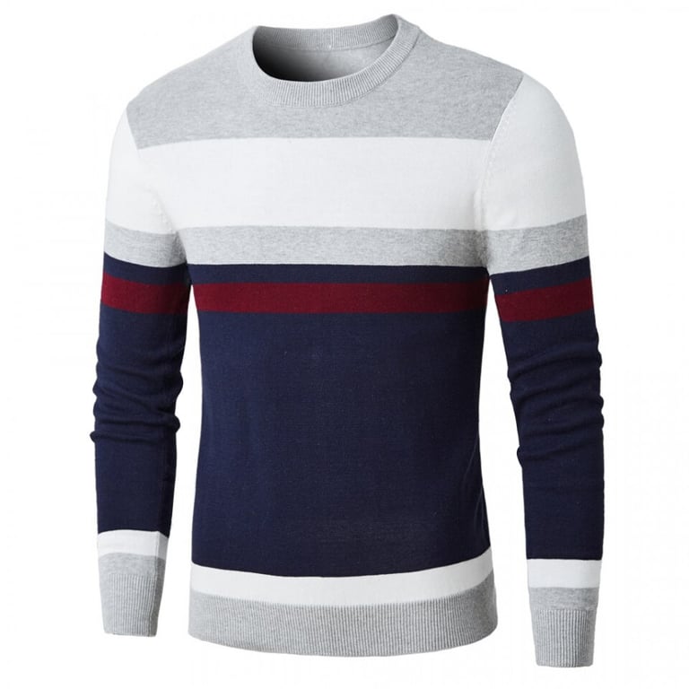 Men's sweater with long sleeves and a round neckline. Fitted cut. Pattern with a coloured stripe. Available in multiple variants.