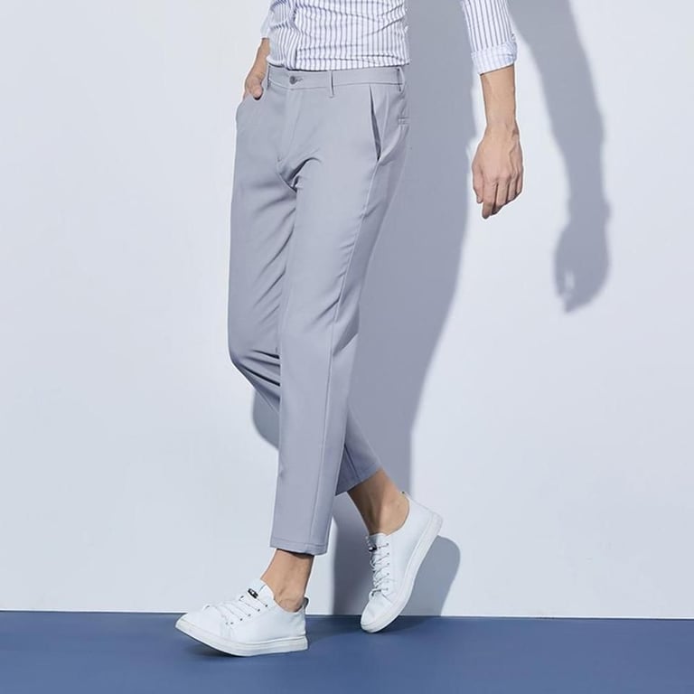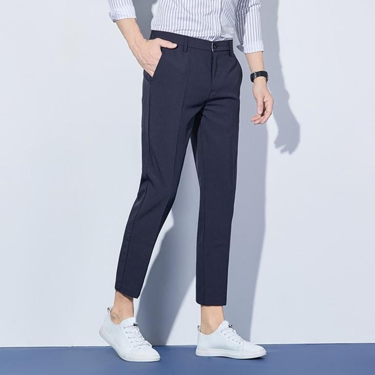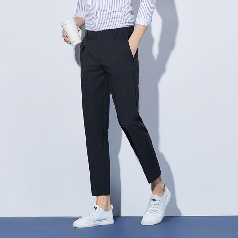 These solid-colour stylish trousers are the right choice for the office.