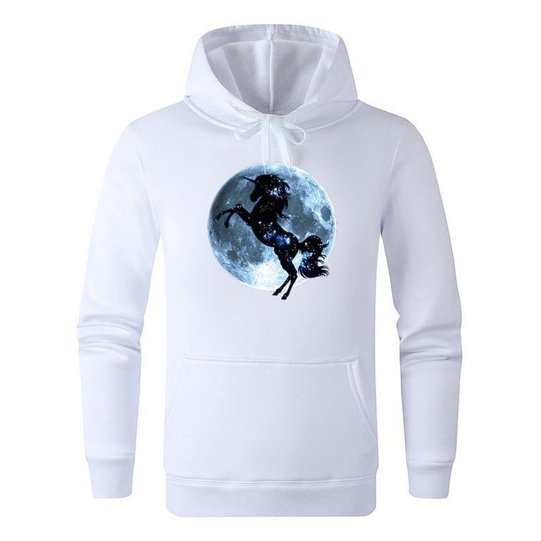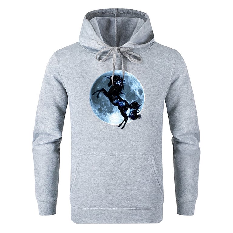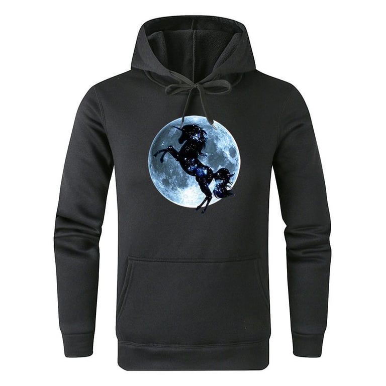 men's clothing, spring clothing, hoodie with kangaroo pocket, unicorn