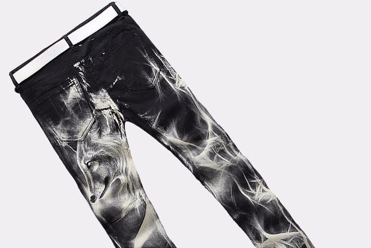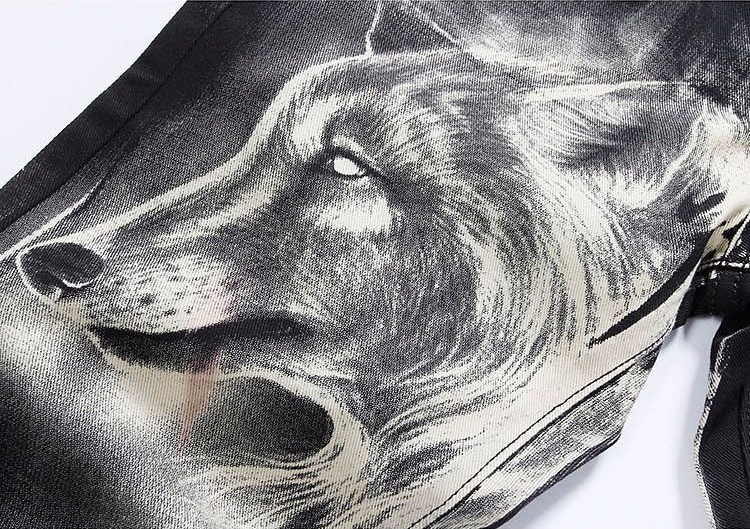 Men's stylish jeans with a wolf.