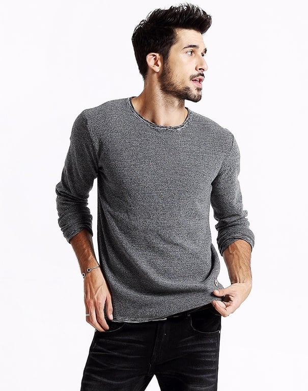 The men's long-sleeve t-shirt in grey is a great choice for any weather.