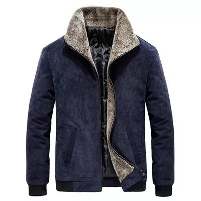 Men's warm winter jacket with a plush collar.