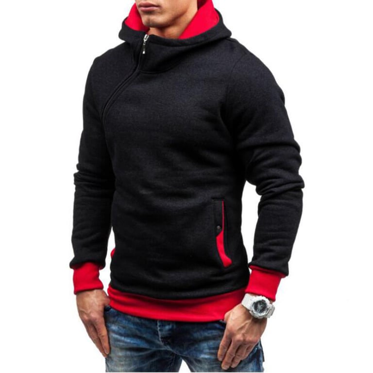 Men's stylish zip hoodie Logan – black with red trimming