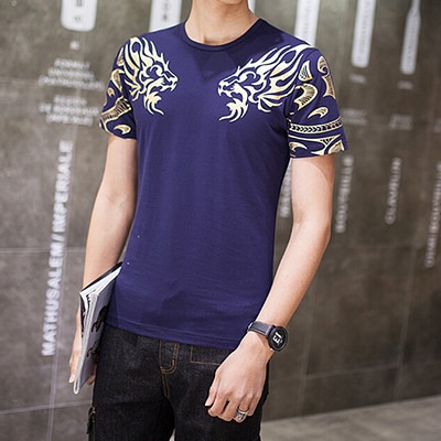 Men's summer cotton t-shirt with a golden tiger on the shoulder