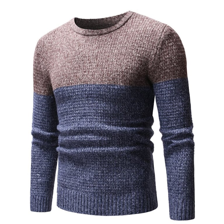 Men's knitted sweater with a round neckline. Fitted cut. Combination of two colours. Available in multiple variants.