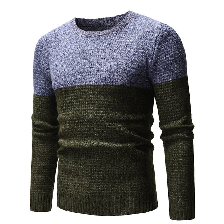 Men's knitted sweater with a round neckline. Fitted cut. Combination of two colours. Available in multiple variants.