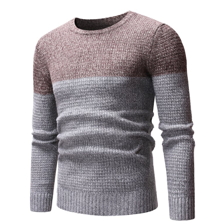 Men's knitted sweater with a round neckline. Fitted cut. Combination of two colours. Available in multiple variants.