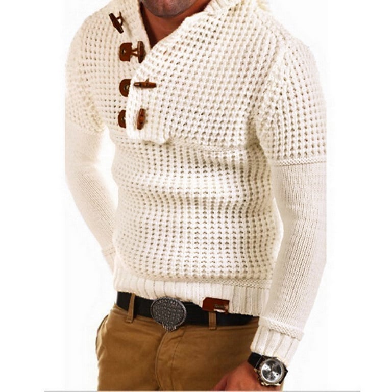 Men's knitted hoodie. The sweater features a V-neck with button fastening. Available in several colour options.