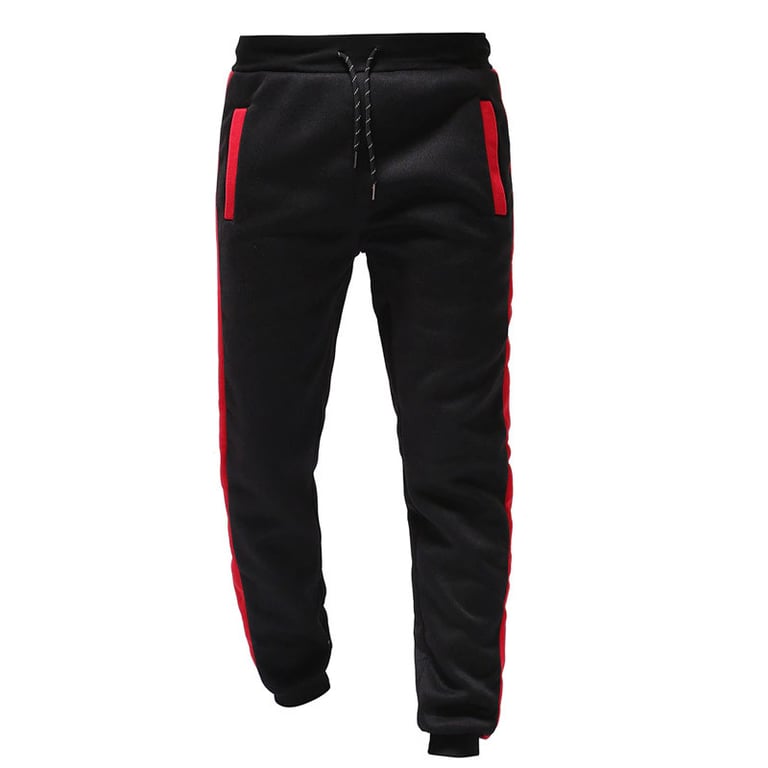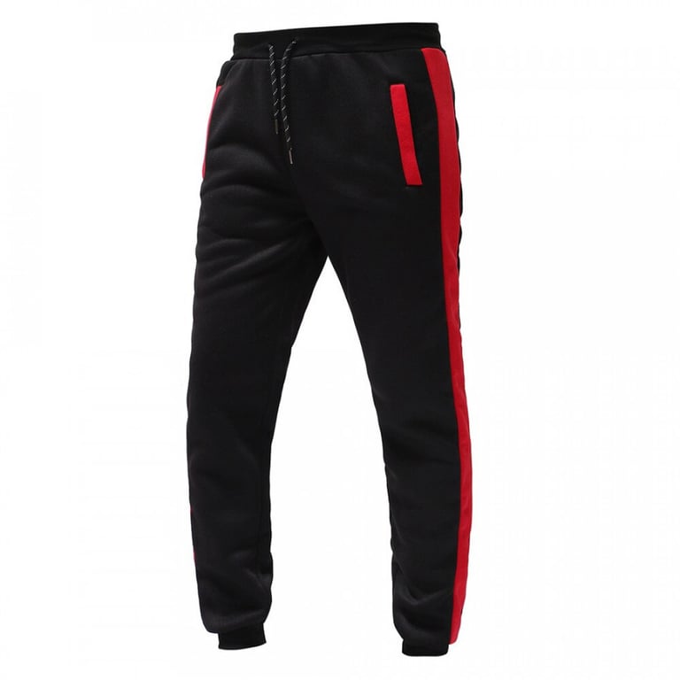 Men's sweatpants with an elastic waistband and drawstrings for adjustment. Tapered legs with elastic and side stripes. Two side pockets. Available in multiple variants.