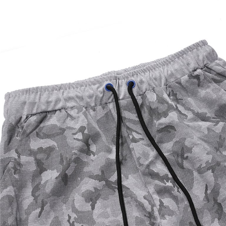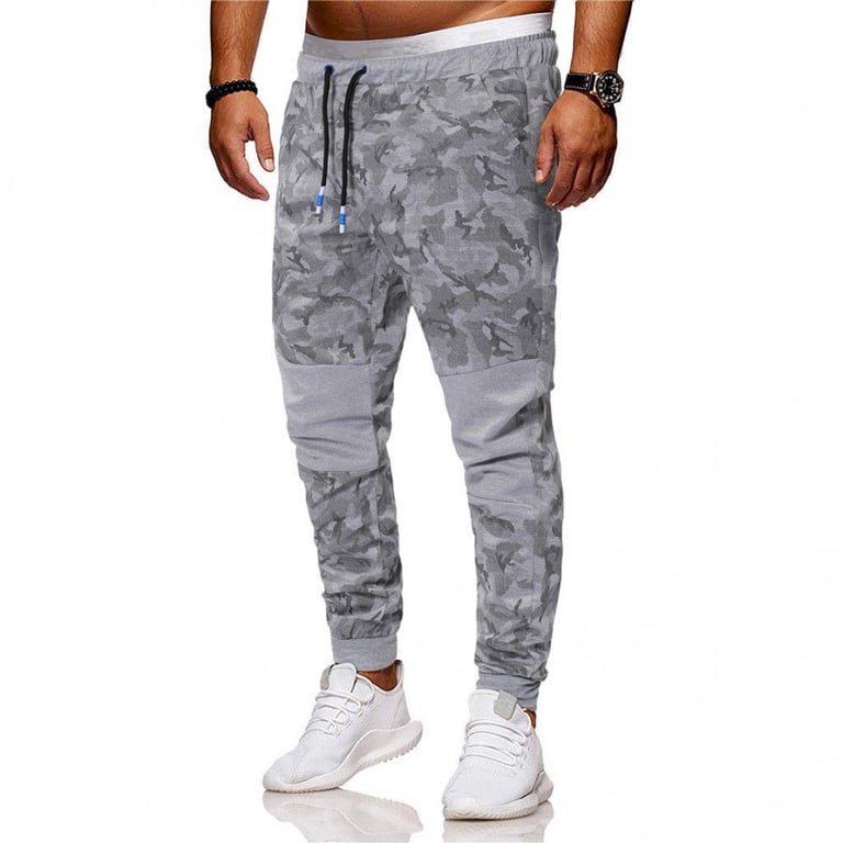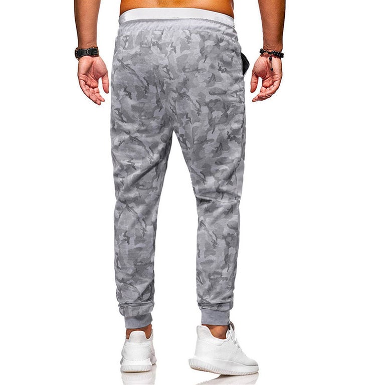 Men's sweatpants with an elastic waistband and drawstrings for tightening. Tapered legs. Quilted knees. Printed with an army pattern. Available in two variants.