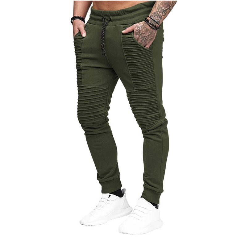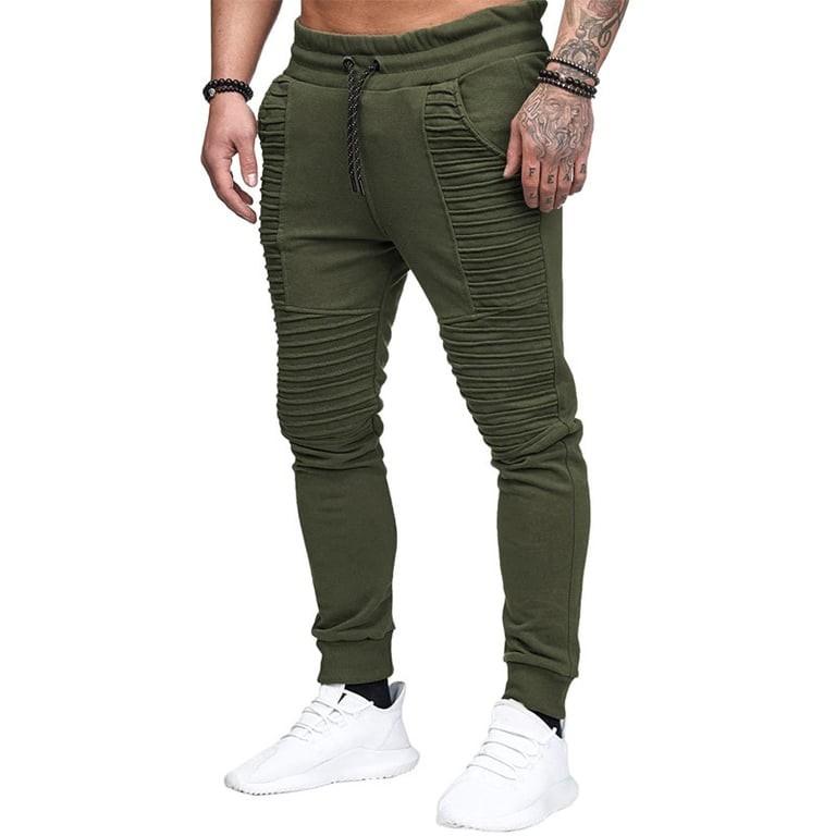 Men's joggers with an elastic waistband and drawstrings. Tapered legs with elastic. Decorative stitching. Available in multiple colour options.