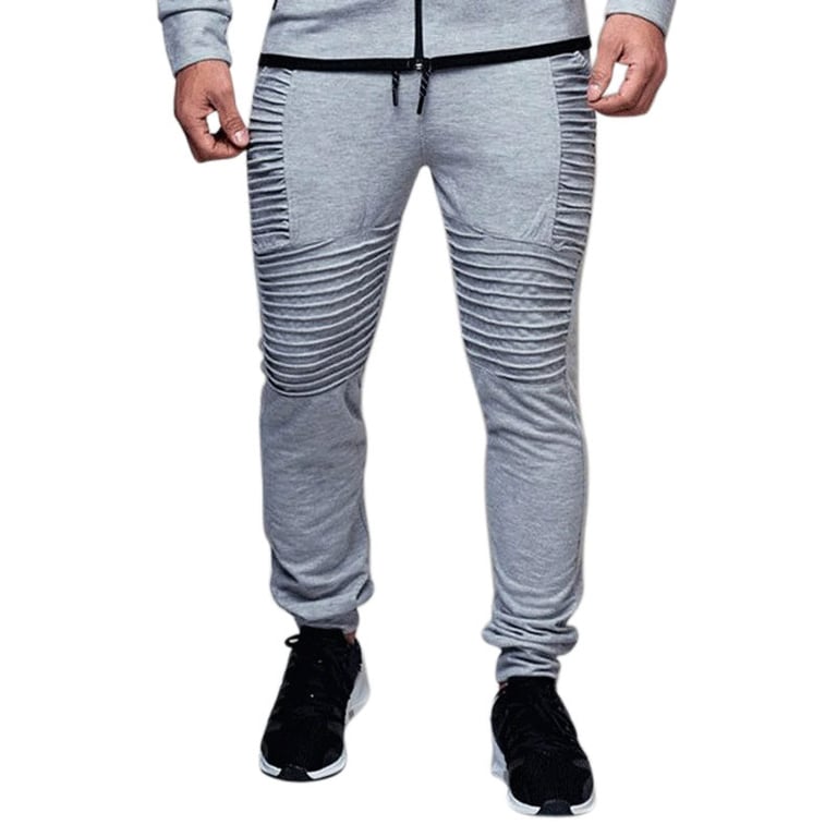 Men's joggers with an elastic waistband and drawstrings. Tapered legs with elastic. Decorative stitching. Available in multiple colour options.