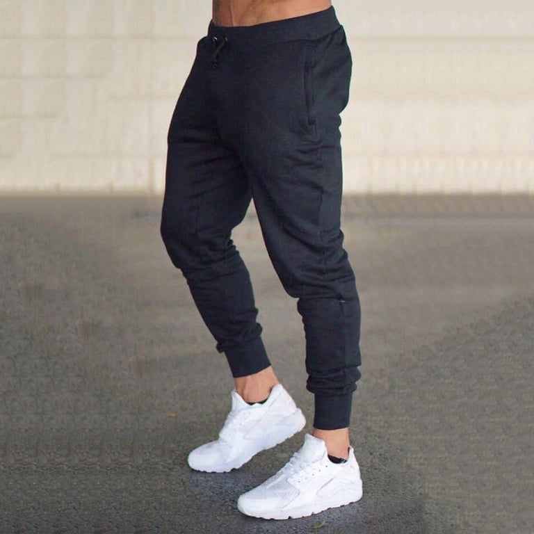 Men's sweatpants with an elastic waistband and drawstrings for adjustment. Tapered legs. Two side pockets. Available in multiple colour options.