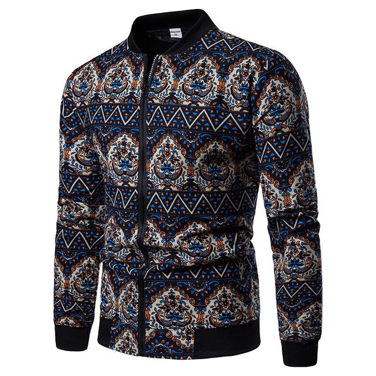 Men's bomber-style sweatshirt. Zip fastening and low collar. Elasticated waist. Print with a colourful pattern. Available in multiple variants.