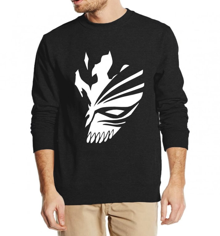 Men's basic pullover sweatshirt. The sweatshirt has a loose fit with an elastic waistband, long sleeves, and a round neckline. Solid colour with a print on the front.