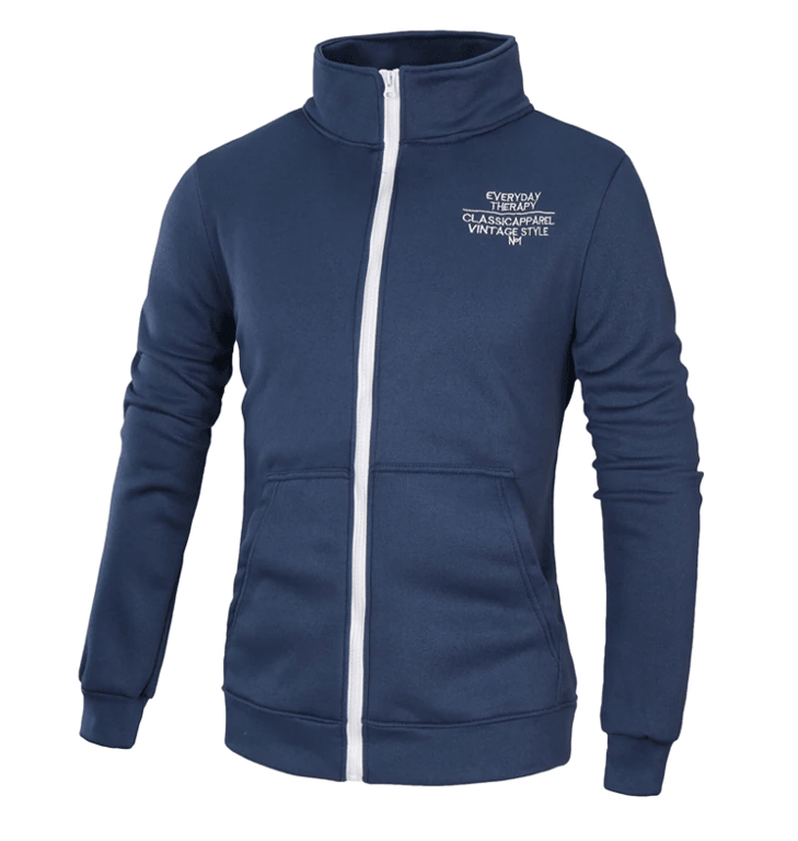 Men's zip-up sweatshirt with a stand-up collar and print on the chest. Available in four colour options.
