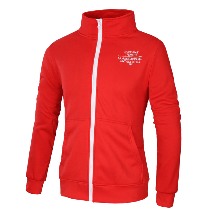 Men's zip-up sweatshirt with a stand-up collar and print on the chest. Available in four colour options.