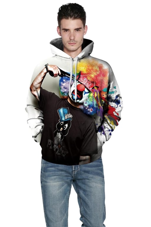 Stylish men's hoodie with a 3D clown. With this hoodie, you'll always be the centre of attention!