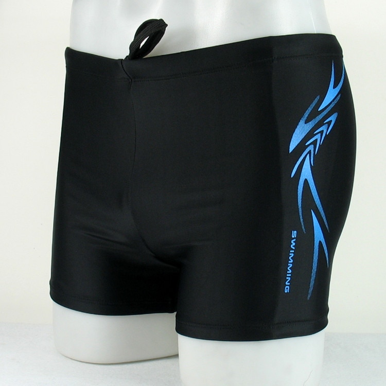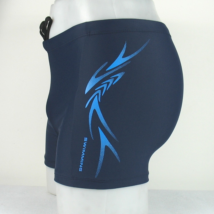 Men's swim shorts with an ornament in boxer style