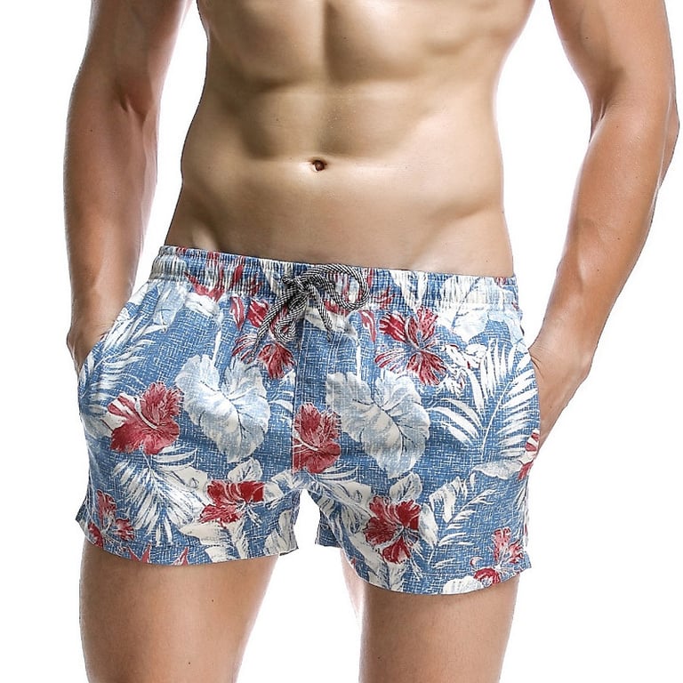 Men's swim shorts with an elasticated waistband and side pockets. Printed with a colourful pattern. Available in multiple variants.