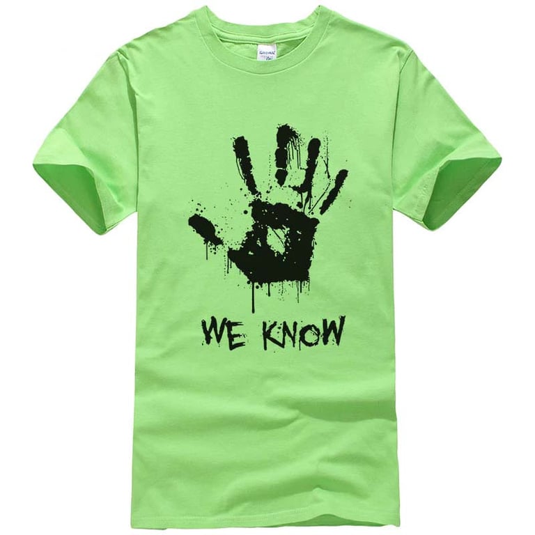 Stylish men's t-shirt featuring a hand motif “we know”, perfect for everyday wear.